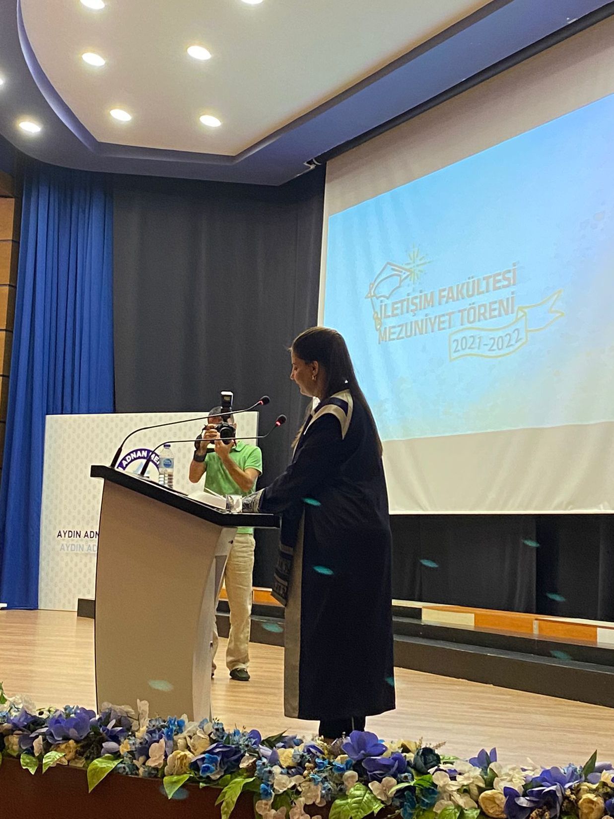 2018 yılında ilk mezunlarımızı verdiğimiz günden beri her geçen gün büyüyen fakültemiz bu sene yeni mezunlarını vermenin mutluluğunu ve gururunu yaşamaktadır. Aydın Adnan Menderes Üniversitesi İletişim Fakültesi’nin bu sevinçli gününde bu mutluluğu paylaşmaya geldiğiniz bu sevinci daha anlamlı kıldığınız için şahsım ve tüm iletişim fakültesi adına hepinize şükranlarımı sunuyorum.