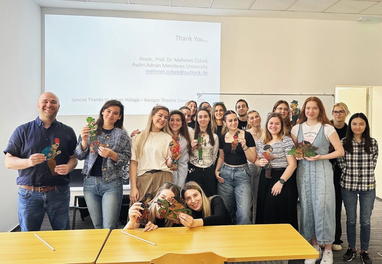Fakültemiz Görsel İletişim Tasarımı Bölümü’nde görev yapan Dr. Öğr. Üyesi Mehmet Özbek, Erasmus+ programı kapsamında 16-17 Mayıs 2024 tarihlerinde Catholic University of Croatia’da (Hrvatsko katoličko sveučilište) ders verme etkinliğine katıldı. Catholic University of Croatia Communicology Bölümü başkanı Prof. Dr. Sc. Danijel Labas ve Fakülte Erasmus Koordinatörü Doc. Dr. Sc. Suzana Peran’ın misafirliğinde Communicology Bölümü öğrencileri ile buluşan Dr. Öğr. Üyesi Mehmet Özbek, “Geleneksel Türk Tiyatrosu ve somut olmayan kültürel mirasımız Karagöz merkezinde performans sanatları, doğaçlama ve felsefe üzerine iletişim bilimleri öğrencileri ile iki gün çok keyifli bir ders verme etkinliği gerçekleştirdik. Farklı kültürlerin bu şekilde sanat, iletişim ve eğitim çatısı altında birleşmesi mutluluk verici. ” ifadelerini kullandı.