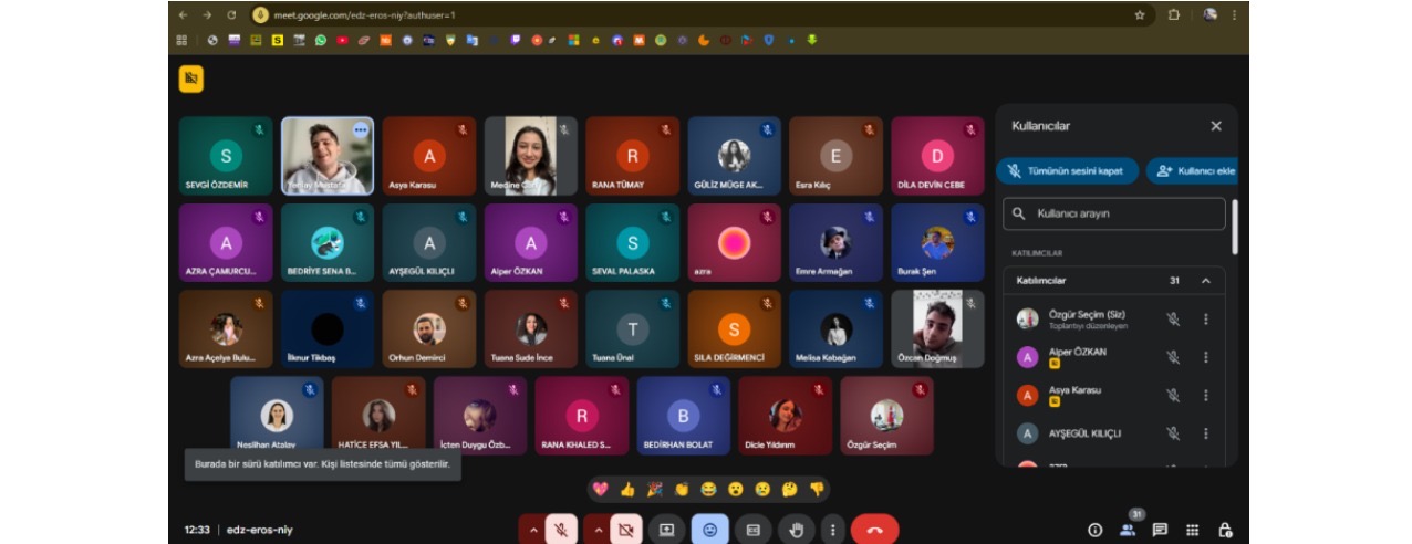 Mezun öğrenciler, mezuniyet sonrasında iş hayatına geçiş süreçleri, sektörel deneyimleri ve kariyer planlamalarına ilişkin bilgiler paylaştı. Toplantının son bölümünde ise hâlen eğitimlerine devam eden öğrencilerden gelen sorular yanıtlandı.