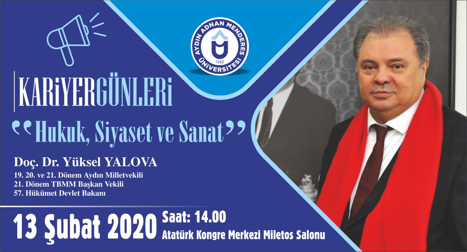 Kariyer Günleri kapsamında, 19,20,21. dönem Aydın milletvekili Doç.Dr. Yüksel Yalova'yı Üniversitemizde ağırlıyoruz.