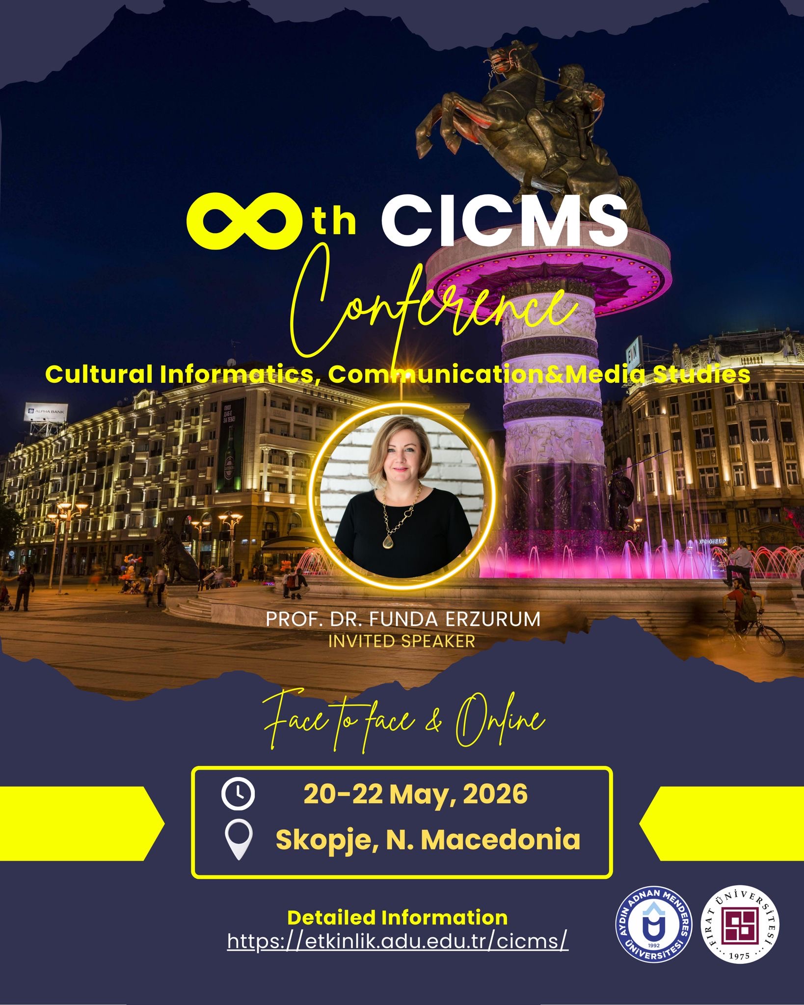 Aydın Adnan Menderes Üniversitesi İletiÅŸim Fakültesi tarafından geleneksel hâle getirilen Kültürel BiliÅŸim, İletiÅŸim ve Medya Çalışmaları Konferansı (CICMS)’nın sekizinci buluÅŸması, 20–22 Mayıs 2026 tarihleri arasında Kuzey Makedonya’nın baÅŸkenti Üsküp’te düzenlenecektir.