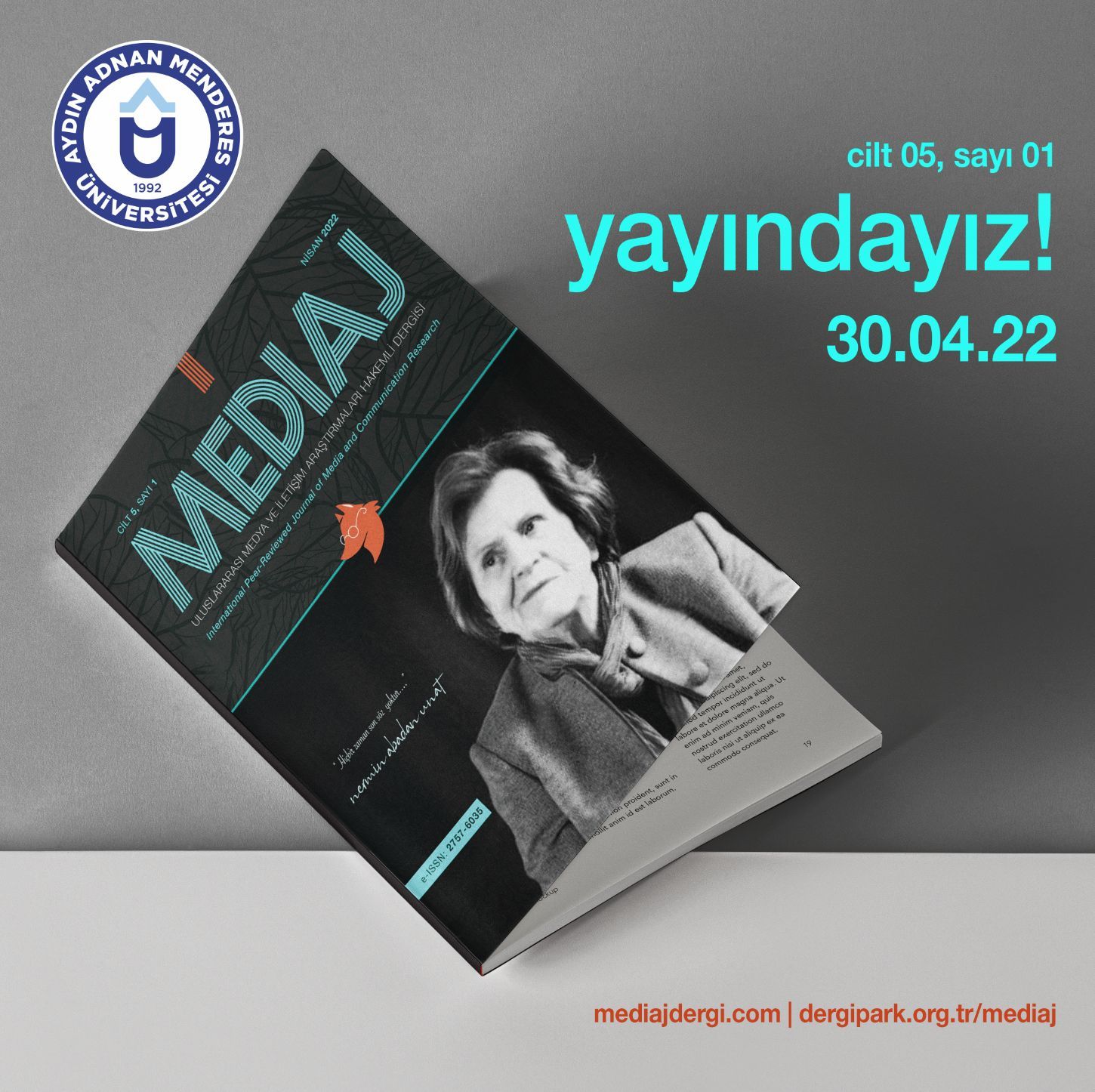 Aydın Adnan Menderes Üniversitesi İletiÅŸim Fakültesi Uluslararası Hakemli Dergisi MEDIAJ Cilt 5 Sayı 1 30 Nisan 2022 tarihinde 8 makale, 1 söyleÅŸi ve 1 kitap incelemesi ile yayımlandı. Ulusal ve Uluslararası birçok veritabanı ve indekste yer alan MEDIAJ, ESCI ve TRDizin baÅŸvuru takip sürecindedir. MEDIAJ'a ulaÅŸmak için: http://mediajdergi.com/ veya https://dergipark.org.tr/tr/