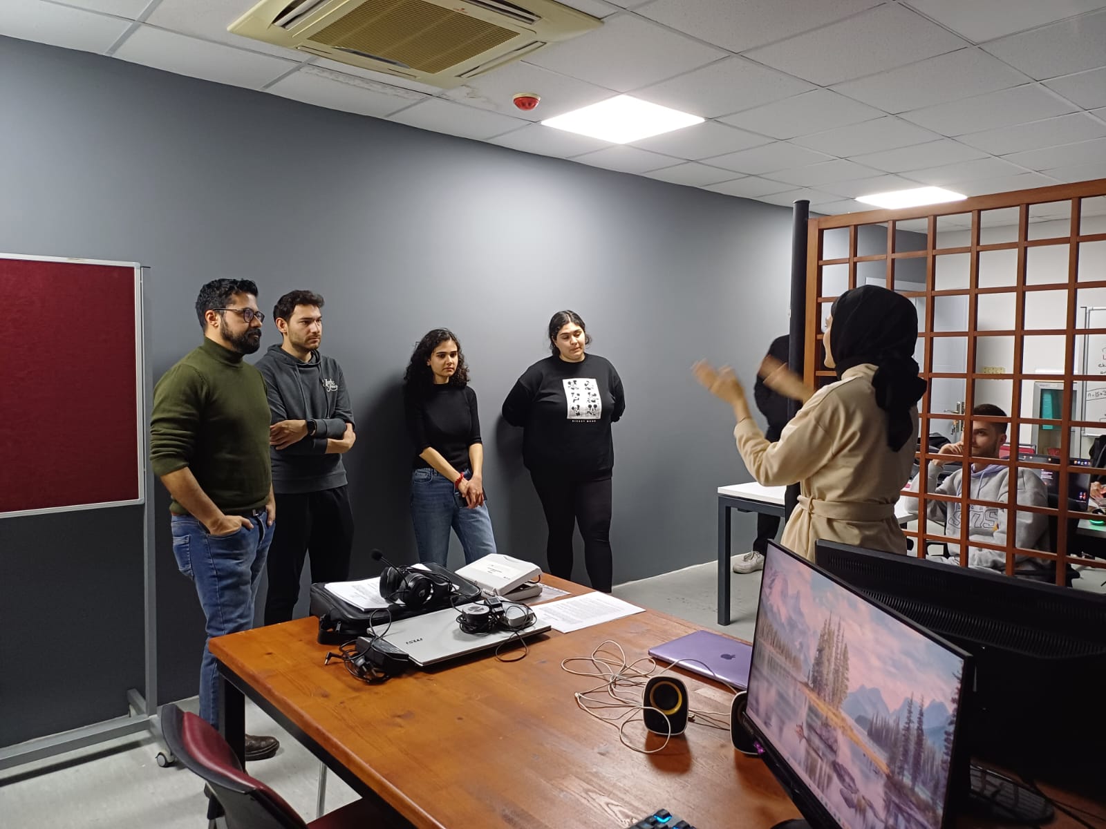 Medya ve İletiÅŸim Çalışmaları Disiplinlerarası Yüksek Lisans ve Doktora öÄŸrencileri Seminer dersi kapsamında İleri Medya Teknolojileri Laboratuvarı’nı (AMT-LAB) ziyaret ederek araÅŸtırma yöntemleri ve psikofizyolojik veri toplama tekniklerine iliÅŸkin bilgi aldılar. Medya ve iletiÅŸim uygulamalarının bilimsel duygu durum ve etki analizlerinin çalışıldığı laboratuvarda, göz izleme, elektrodermal veri toplama cihazı gibi donanımları deneyimleme fırsatı buldular.