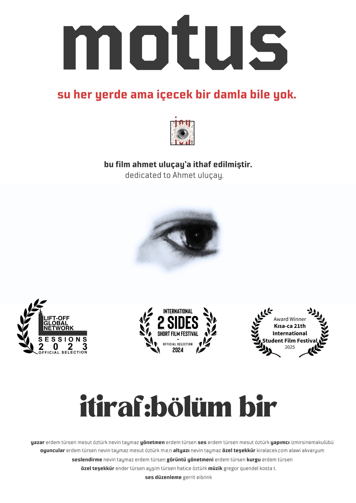 Üniversitemiz, İletiÅŸim Fakültesi Radyo, Televizyon ve Sinema Bölümü üçüncü sınıf öÄŸrencisi Erdem Türsen, “Motus (SerzeniÅŸ)” isimli kısa filmiyle, “21. Uluslararası KISA-CA ÖÄŸrenci Film Festivali”nde “Deneysel” kategorisinde Kadir Yalçın Üçüncülük Özel Ödülü’nü almaya hak kazandı. ÖÄŸrencimizi baÅŸarısından dolayı tebrik eder, Kısa Film Atölyesi’ndeki çalışmalarında baÅŸarılar dileriz.