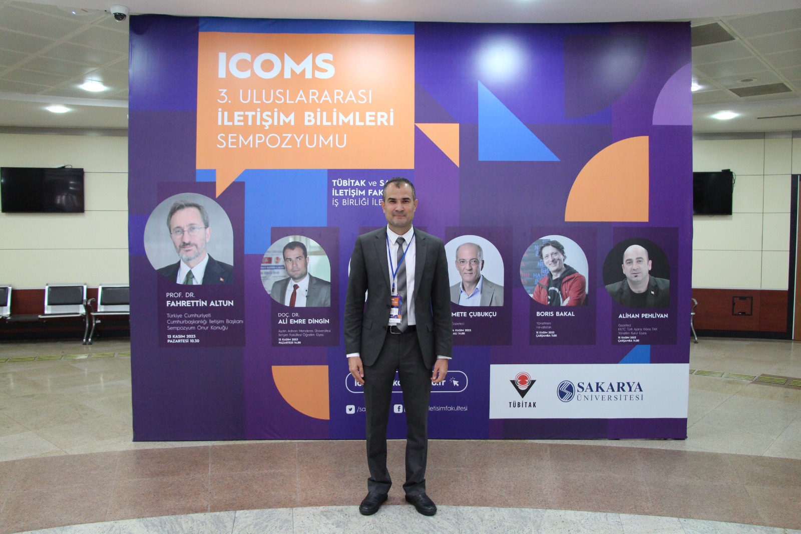 TÜBİTAK ve Sakarya Üniversitesi tarafından düzenlenen Cumhurbaşkanlığı İletişim Başkanı Prof. Dr. Fahrettin Altun’un açılış konuşmasını yaptığı 3. Uluslararası İletişim Bilimleri Sempozyumu’nda (İCOMS) Aydın Adnan Menderes Üniversitesi Gazetecilik Bölümü Öğretim Üyesi Doç. Dr. Ali Emre Dingin tarafından “Kamuoyu gündemi nasıl belirlenir? Gündem belirleme üzerine notlar” isimli söyleşi 15 Kasım 2023 tarihinde Sakarya Üniversitesinde gerçekleşti.