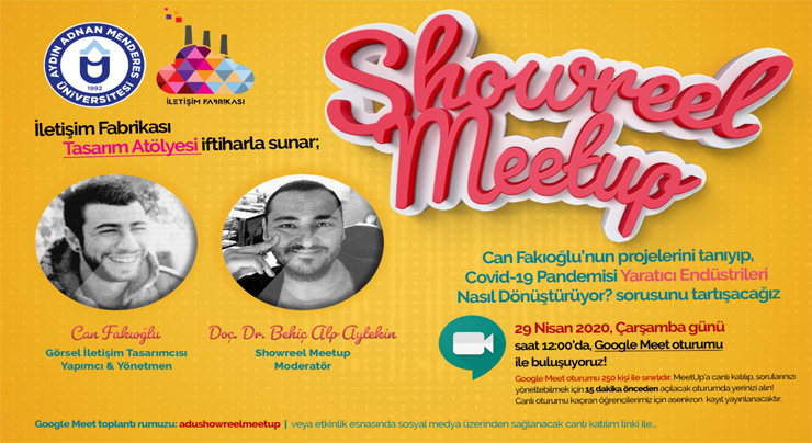 İletişim Fabrikası Tasarım Atölyesi Covid-19'un gündemimizdeki ağırlığına inat, Showreel MeetUp etkinliğini başlatıyor. 29 Nisan Çarşamba günü, saat 12:00'da Google Meet üzerinden gerçekleşecek etkinliğin ilk konuğu görsel iletişim tasarımcısı, yapımcı ve yönetmen Can Fakıoğlu…. Mercan Dede, Mor ve Ötesi, Pilli Bebek, Yüksek Sadakat, Feridun Düzağaç ve daha pek çok ünlü sanatçının tasarım ve prodüksiyon işlerini hayata geçiren Fakıoğlu, son dönem işleri olarak da bir yandan Göbeklitepe'nin tüm mekan deneyiminin sanal gerçekliğe aktarılması ile uğraşırken bir yandan da Sokrates Dergi ve YouTube Kanalı projesinin prodüksiyon ayağını hayata geçiriyor.