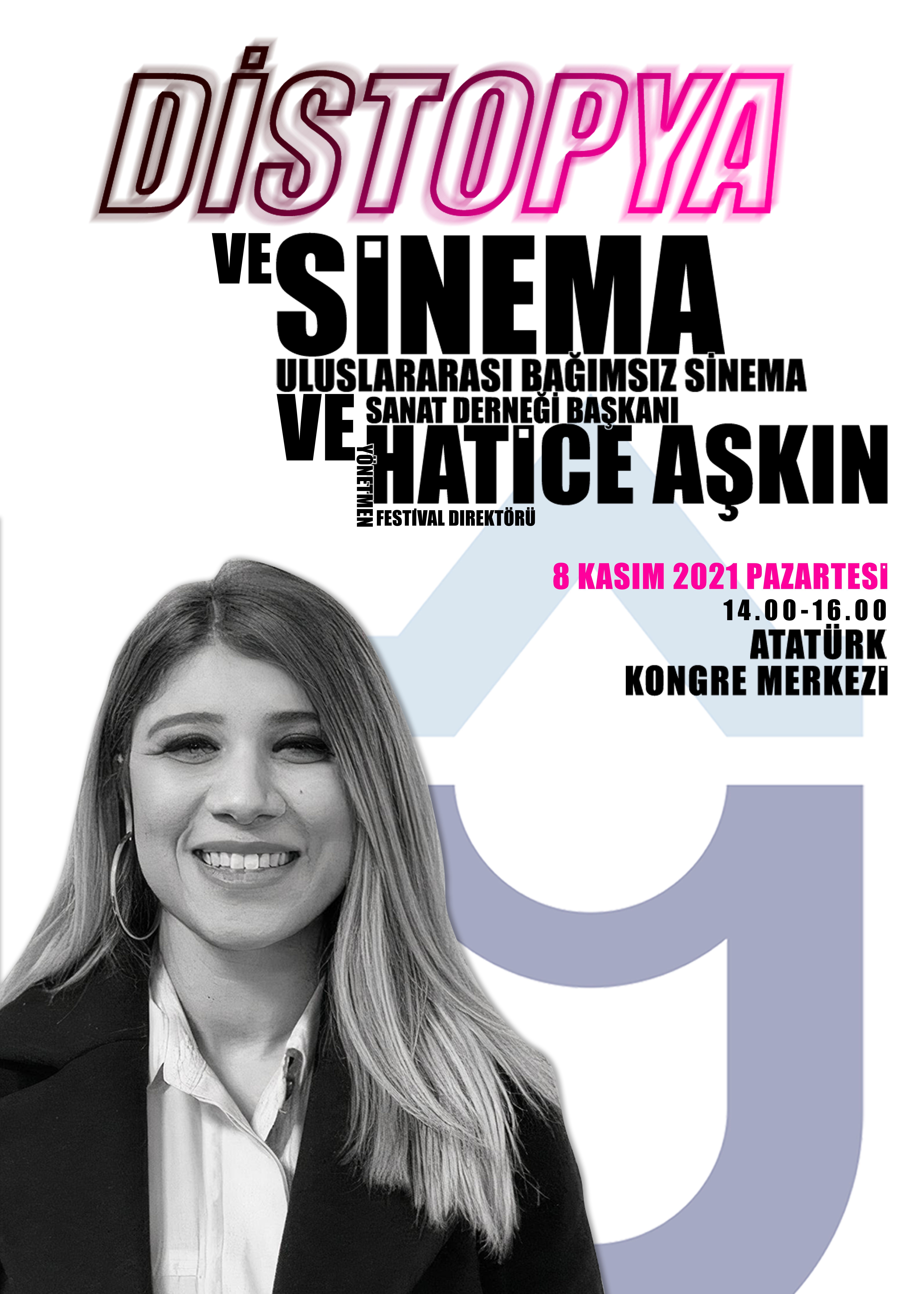 Fakültemizin düzenlediği “Distopya ve Sinema” isimli konferansla Uluslararası Bağımsız Sinema Derneği Başkanı Hatice Aşkın 8 Kasım 2021 tarihinde Saat 14:00’de Atatürk Kongre Merkezi’nde öğrencilerle buluşacak.
