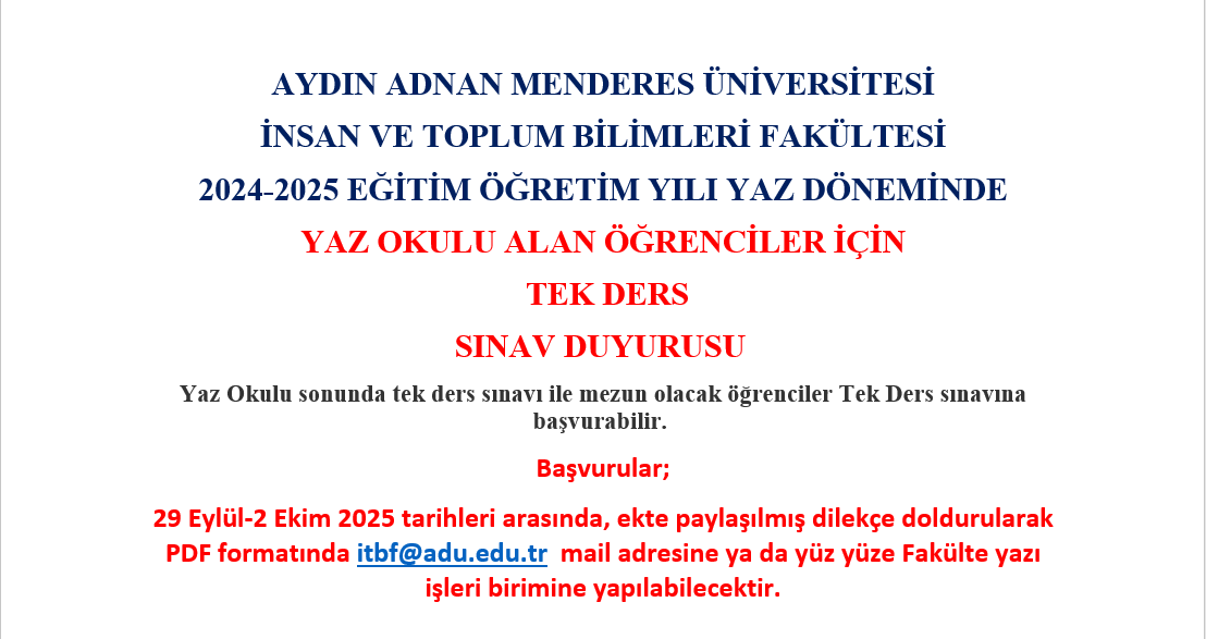 TEK DERS SINAV BAŞVURU DİLEKÇESİNİ İNDİRMEK İÇİN TIKLAYINIZ...