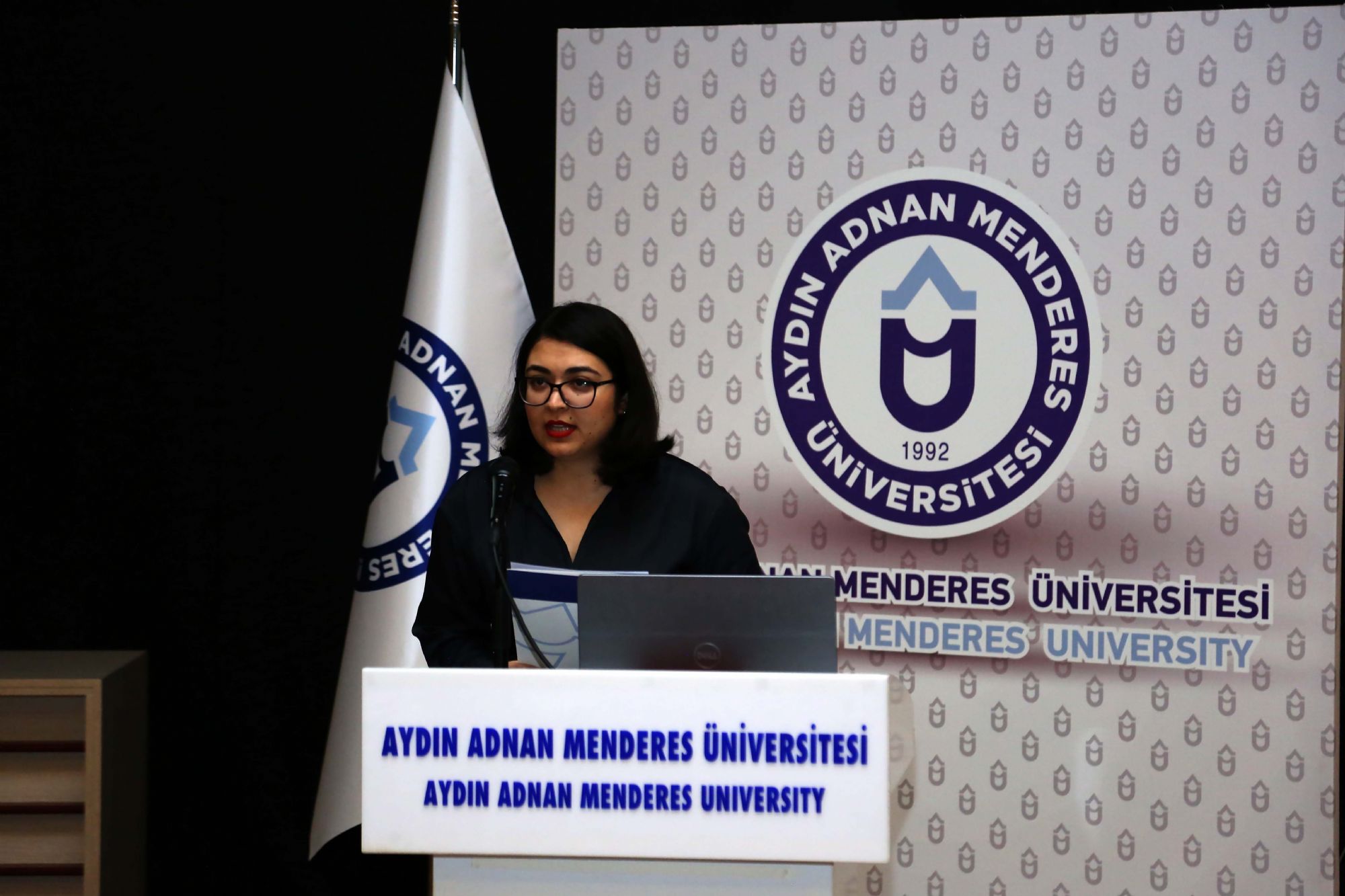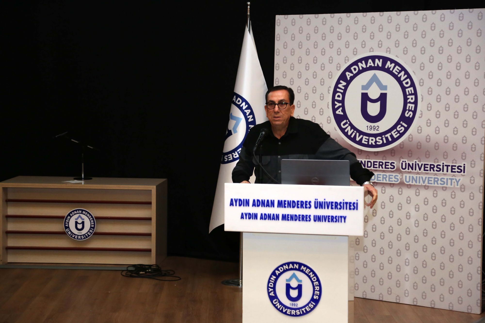 Programda, İnsan ve Toplum Bilimleri Fakültesi Fransız Dili ve Edebiyatı Bölümü Öğretim Üyesi Prof. Dr. Mustafa Sarıca "Göstergebilim-Anlama Yolculuk" başlıklı bir seminer verdi. Konuşmasında göstergebilimin kapsamı üzerinde duran Prof. Dr. Sarıca, var oluş yolculuğunda anlamlarla kuşatılmış olan insanın söz konusu anlamları çözmesinde göstergebilimin rolüne değindi.