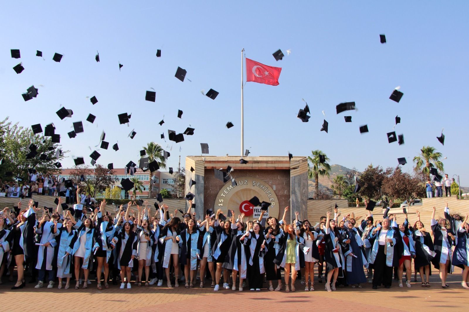 Mezun öğrencilere belgelerinin verilmesinin ardından kep atma seremonisi ile mezuniyet töreni sona erdi.