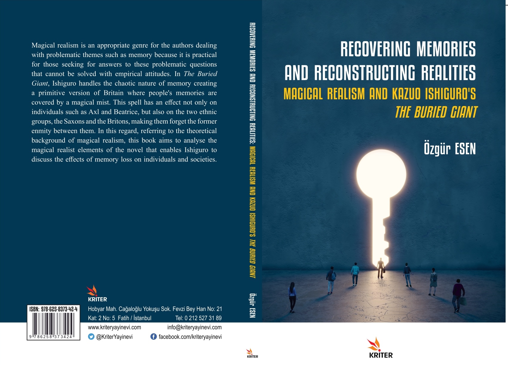 İnsan ve Toplum Bilimleri Fakültesi İngiliz Dili ve Edebiyatı Bölümü öÄŸretim elemanlarından ÖÄŸr. Gör. Dr. Özgür ESEN’in kaleme aldığı Recovering Memories and Reconstructing Realities: Magical Realism and Kazuo Ishiguro’s The Buried Giant (2024) isimli kitap, Kriter Yayınevi tarafından yayımlandı.