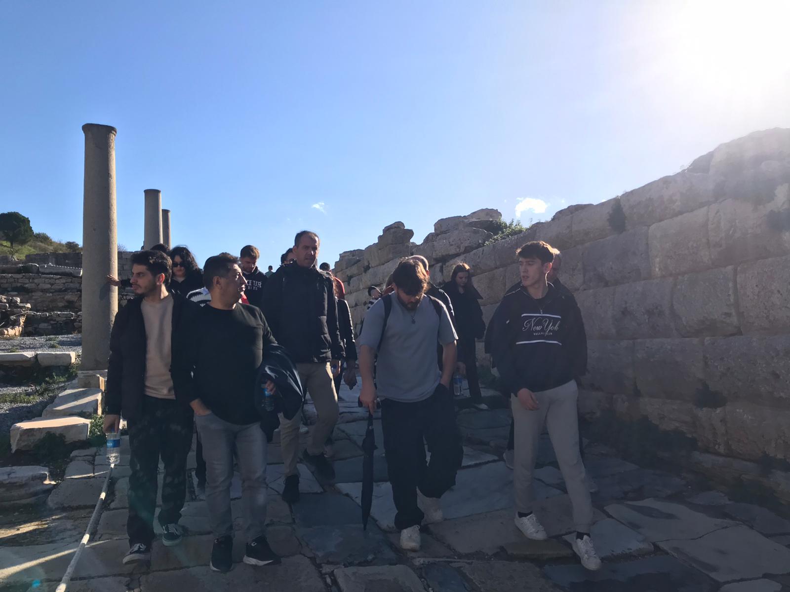 Üniversitemiz İnsan ve Toplum Bilimler Fakültesi Tarih Bölümü Eski ÇaÄŸ Tarihi Ana Bilim Dalı BaÅŸkanı Prof. Dr. Hüseyin Üreten, yürütmekte olduÄŸu Eski ÇaÄŸ Tarihi dersleri kapsamında öÄŸrencileri ile birlikte Efes Antik Kenti’ni ziyaret etti. 16 Aralık 2023 Cumartesi günü gerçekleÅŸen bilimsel ve kültürel amaçlı bu gezide öÄŸrenciler Efes Antik Kenti’nin yanında Efes Müzesi, Meryem Ana ve Selçuk Kent BelleÄŸi’ni de ziyaret ederek bilgi edindi. Gezi sonunda, Prof. Dr. Üreten ve öÄŸrencileri İnsan ve Toplum Bilimleri Fakültesi Dekan V. Prof. Dr. Aysun Sarıbey Haykıran tarafından Aydın’da karşılandı.