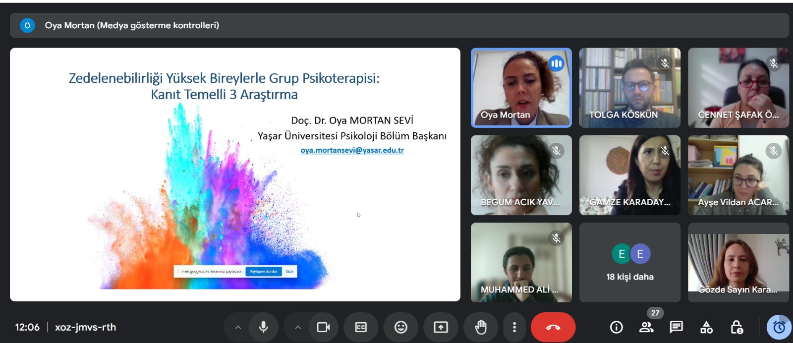 İnsan ve Toplum Bilimleri Fakültesi Psikoloji Bölümü, Cuma Seminerleri kapsamında 3 Ocak 2025 Cuma günü İzmir YaÅŸar Üniversitesi öÄŸretim üyelerinden Doç. Dr. Oya Mortan Sevi’ yi konuk etti. KonuÅŸmacının "ZedelenebilirliÄŸi Yüksek Bireylerle Grup Psikoterapisi: Kanıt Temelli 3 AraÅŸtırma" baÅŸlıklı sunumu öÄŸretim üyeleri ve öÄŸrenciler tarafından ilgiyle takip edildi. Seminer katılımcıların sorularıyla son buldu.