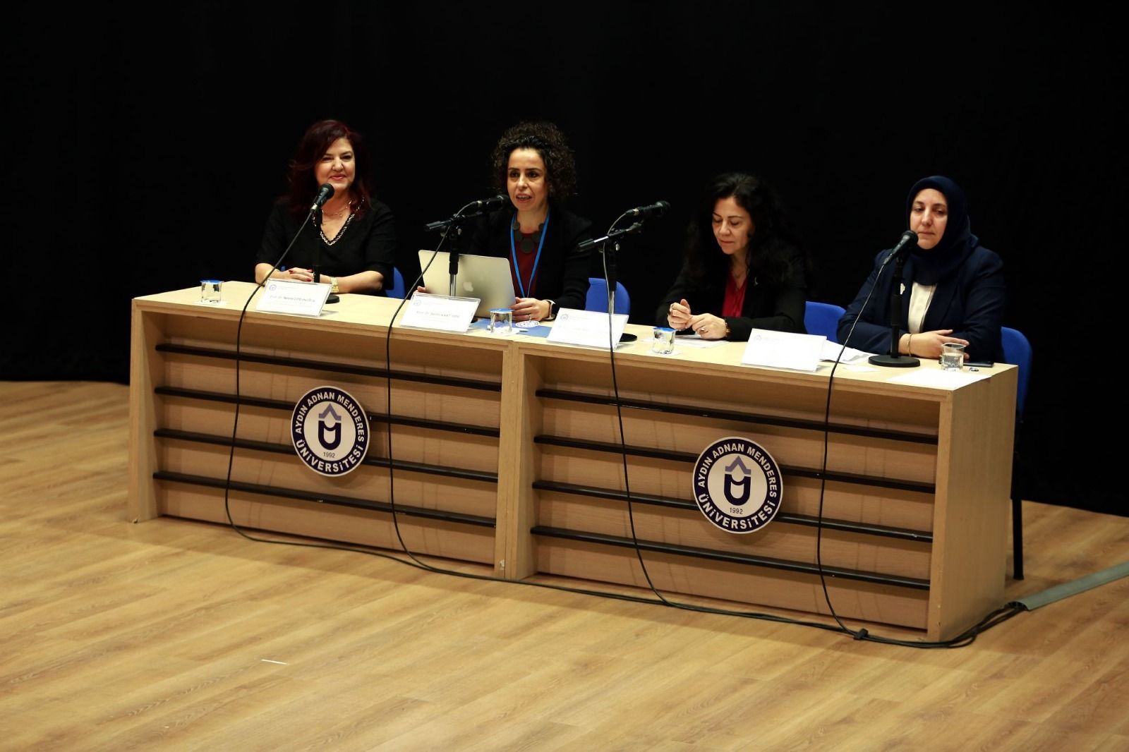8 Mart Dünya Kadınlar Günü’nde İnsan ve Toplum Bilimleri Fakültesi Felsefe Bölümü BaÅŸkanı Prof. Dr. Berfin Kart Tepe öncülüÄŸünde, Disiplinlerarası Bakışla Kadın ve Sorunları Paneli düzenlendi. Panelde kadın sorunlarını farklı perspektiflerden ele alan ve bu konuda çalışmalar yapan uzmanlar bir araya geldi. Üniversitemiz Rektör Yardımcısı ve Fakültemiz öÄŸretim üyesi Prof. Dr. Erkan Salan, Fakültemiz Dekanı Prof. Dr. Åžahabettin Yalçın, Dekan Yardımcıları Doç. Dr. Tuncay Saygın ile Doç. Dr. Mesut Günenç’in ve Fakültemiz öÄŸretim üyeleri ve öÄŸrencilerinin katılımlarıyla düzenlenen panelde, her kesimden kadın sorunlarının ele alınabilmesi ve yönetimsel süreçlerde yer alan kadınların yaÅŸadıkları sorunların görünür kılınabilmesi, Üniversitemiz Kadın Sorunları AraÅŸtırma Uygulama Merkezi ve Sosyal Bilimler Enstitüsü Kadın Çalışmaları Anabilim Dalının katkıları gibi konulara yer verildi. Panelin dış paydaÅŸlarından biri olan Gazi Üniversitesi Kadın Çalışmaları AraÅŸtırma Merkezinin desteÄŸiyle farklı üniversitelerdeki çalışmalar ve karşılaşılan sorunlar da katılımcılarla paylaşıldı. Panelin dış paydaşı olarak Gazi Üniversitesinden üniversitemiz etkinliÄŸine katkı sunan Prof. Dr. Nesrin ÇobanoÄŸlu yetki ve karar süreçlerinde kadınlarımızın sorunlarını, İnsan ve Toplum Bilimleri Fakültesinin öÄŸretim üyeleri Prof. Dr. Berfin Kart Tepe ve Dr. ÖÄŸr. Üyesi AyÅŸe Arzu Korucu felsefe ve edebiyatta kadın sorunlarını ele aldı. Panelin paydaÅŸlarından Kadın Sorunları AraÅŸtırma Merkezi Müdürü ve Aydın Kadem İl Temsilcisi ÖÄŸr. Gör. Dilek Akıcı Tayanç ise merkezimiz ve sivil toplumlar perspektifinden kadın sorunlarını ele alarak çözüm önerilerine katkı saÄŸladılar.