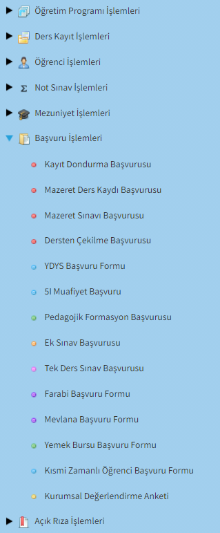 Diğer dilekçe ve form işlemleri OBİS üzerinden yapılmaktadır. OBİS üzerinden yapılan başvurularda belge istenmesi durumunda mazereti belirten kanıtlayıcı belge yüklenmesi zorunludur.