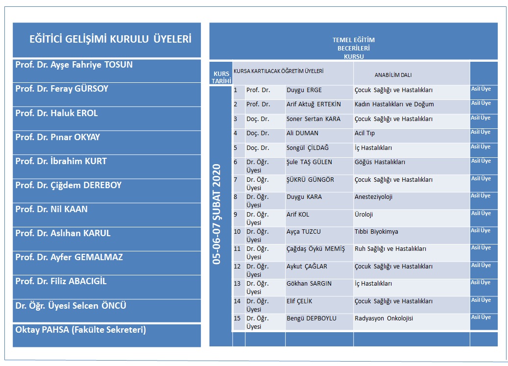 05-06-07 Şubat 2020 Temel Eğitim Beceri Kursu