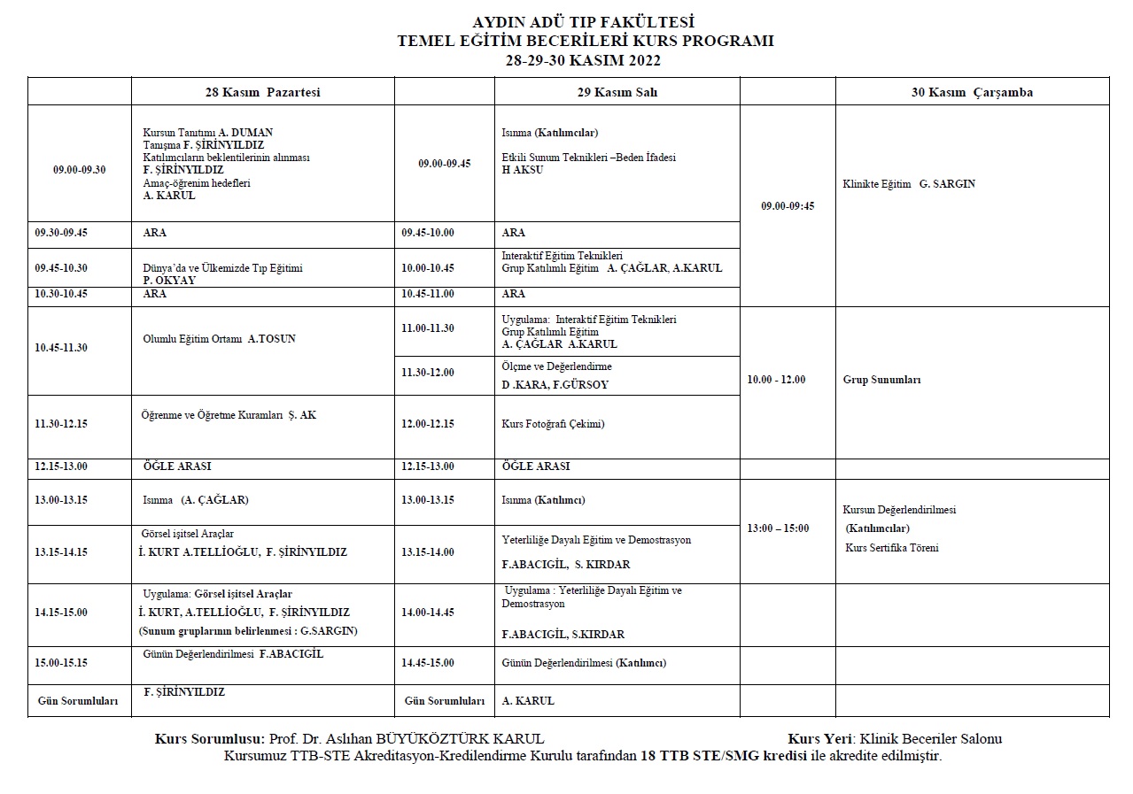28-29-30 Kasım 2022 Temel Eğitim Becerileri Kursu
