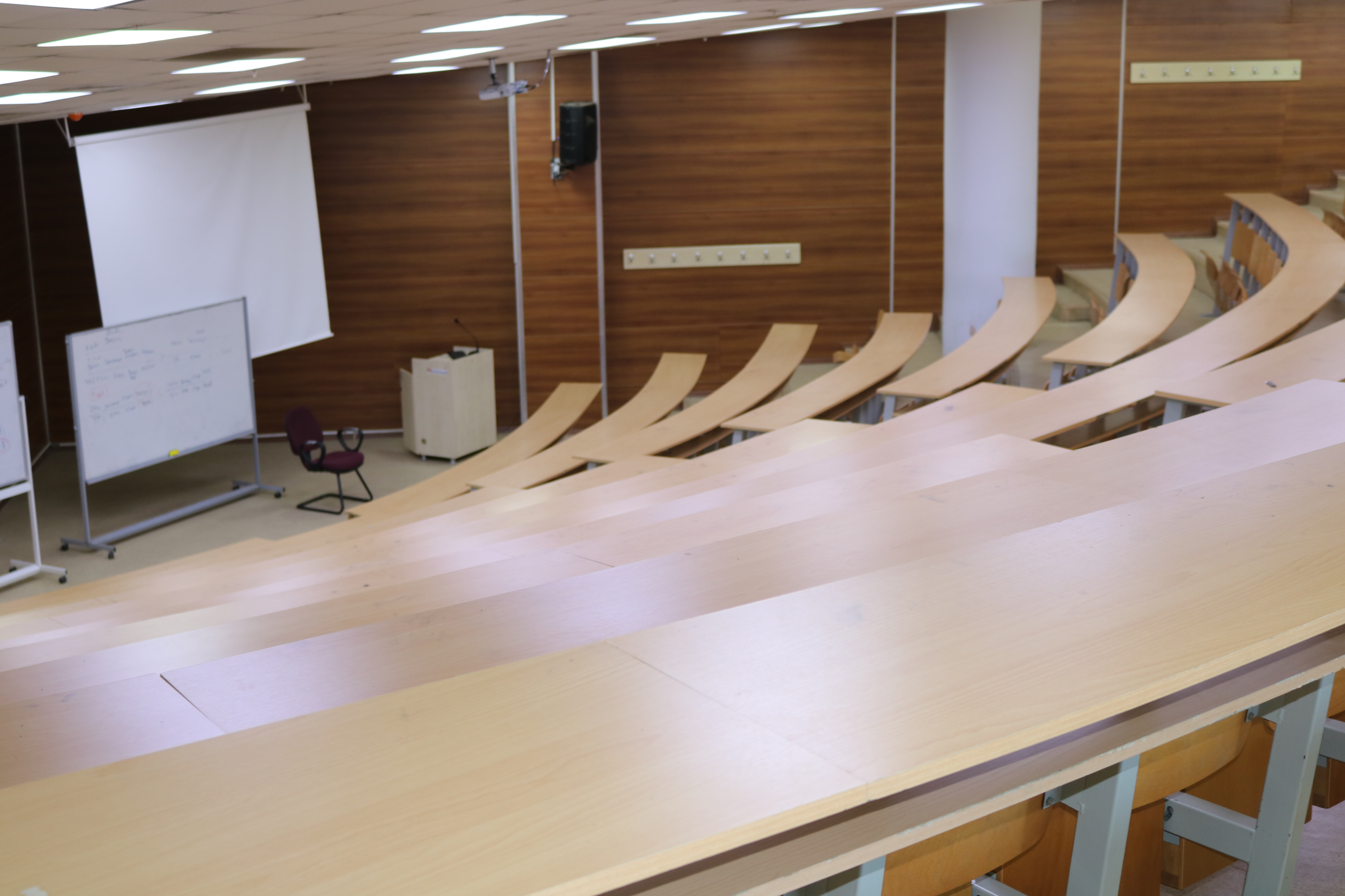 Amfilerde sabit bilgisayar, projeksiyon, ses sistemi ve internet bağlantısı mevcuttur.