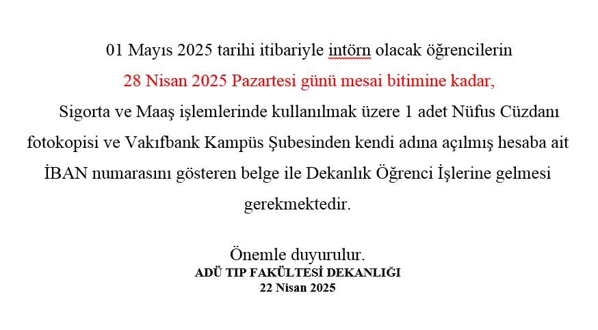 01 Mayıs'ta intörn olacak öğrencilerin dikkatine