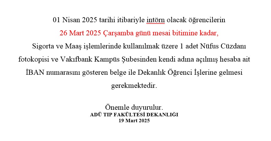 01 Nisan'da intörn olacak öğrencilerin dikkatine