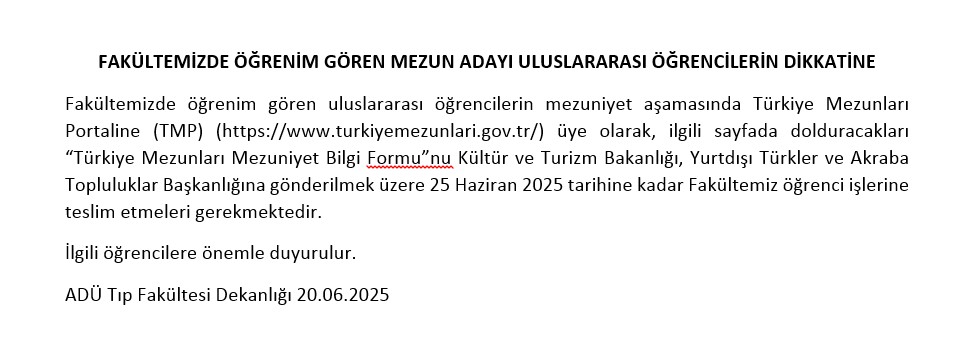 01 Temmuz 2025 tarihi itibariyle MEZUN olacak ULUSLARARASI öğrencilerin DİKKATİNE!!!