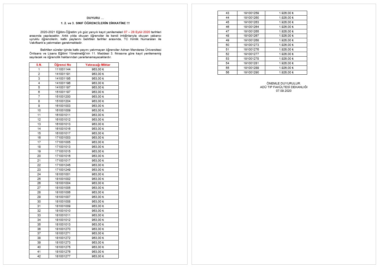 1. 2. 3. SINIF HARÇ DUYURUSU