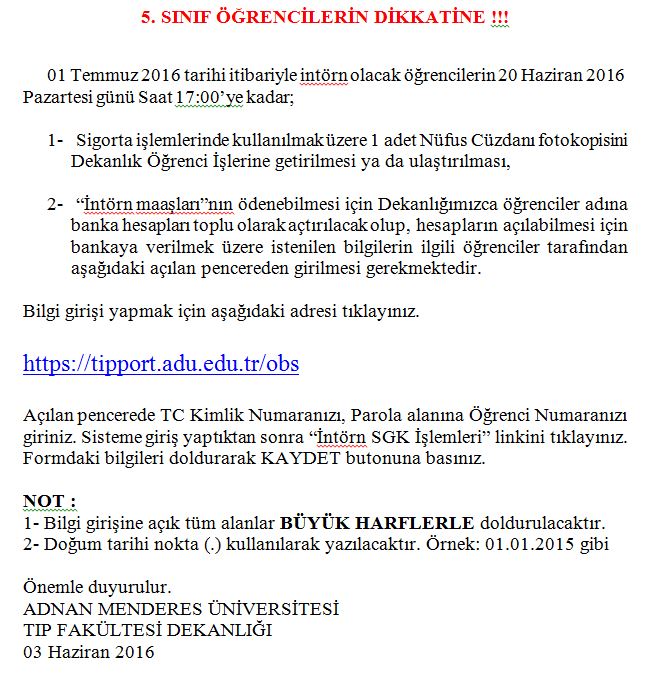 1 TEMMUZ 2016 İTİBARİYLE İNTÖRN OLACAK ÖĞRENCİLERİN DİKKATİNE..!!