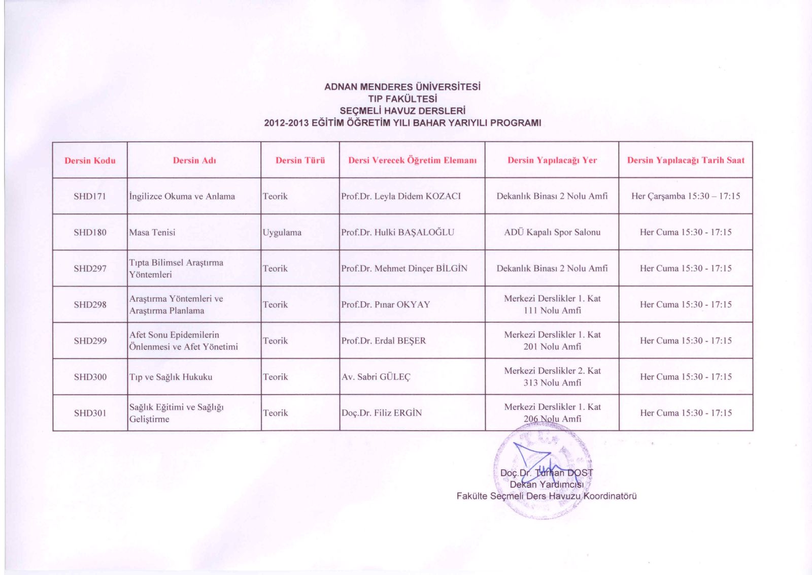 SEÇMELİ HAVUZ DERS PROĞRAMI VE YERLERİ BELLİ OLMUŞTUR GÖRMEK İÇİN LÜTFEN SEÇİNİZ.
