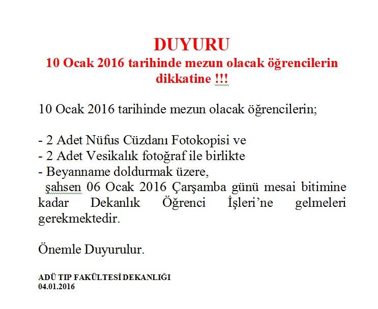 10 Ocak 2016 tarihinde mezun olacak öğrencilerin dikkatine !!!