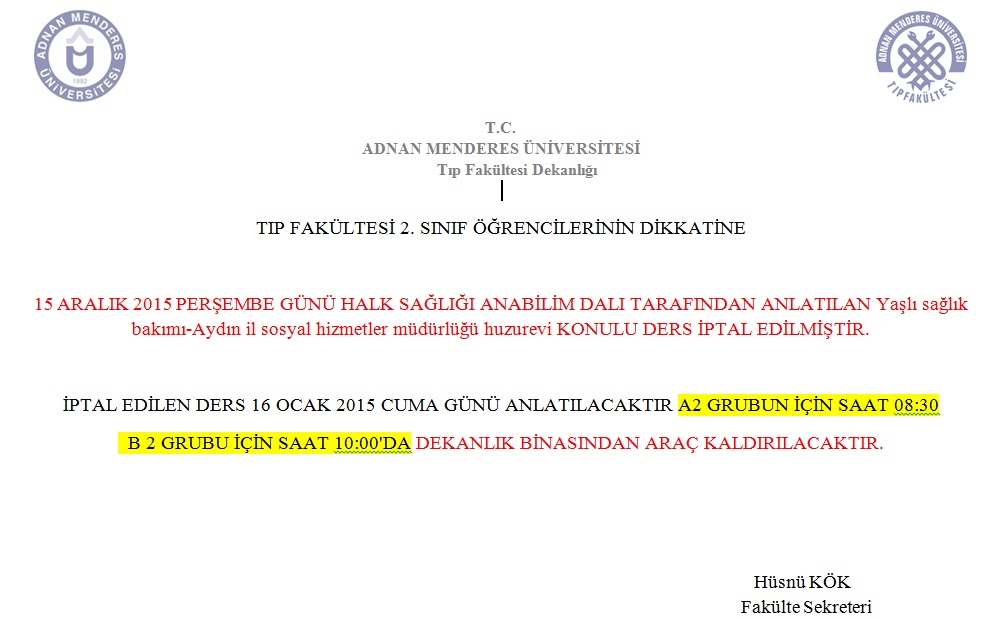 2. SINIF ÖĞRENCİLERİNİN DİKKATİNE