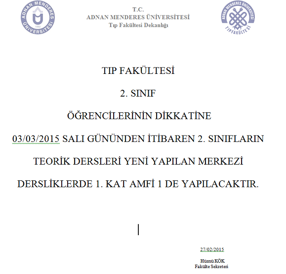 2. SINIF ÖĞRENCİLERİNİN DİKKATİNE