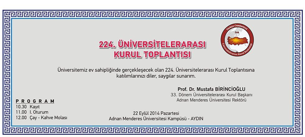 184 Üniversitenin Rektörlerinin bir araya geleceği 224. Üniversitelerarası Kurul Toplantısına tüm akademik personelimiz davetlidir.