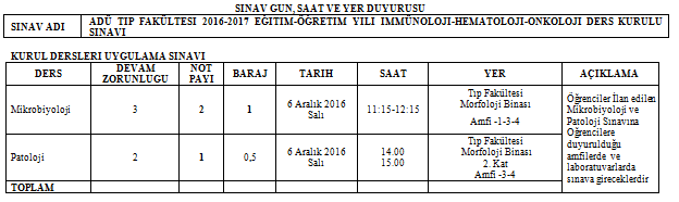3. Sınıf İmmünoloji-Hematoloji-Onkoloji Ders Kurulu uygulama sınavları