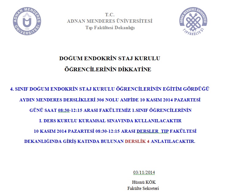 4. SINIF DOĞUM ENDOKRİN STAJ KURULU ÖĞRENCİLERİNİN DİKKATİNE
