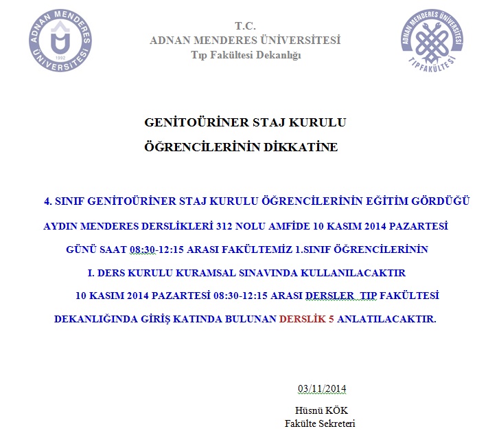 4. SINIF GENİTOÜRİNER STAJ KURULU ÖĞRENCİLERİNİN DİKKATİNE