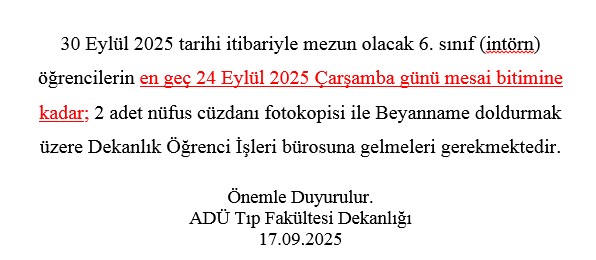 6. Sınıf İntörn Öğrencilerin Dikkatine