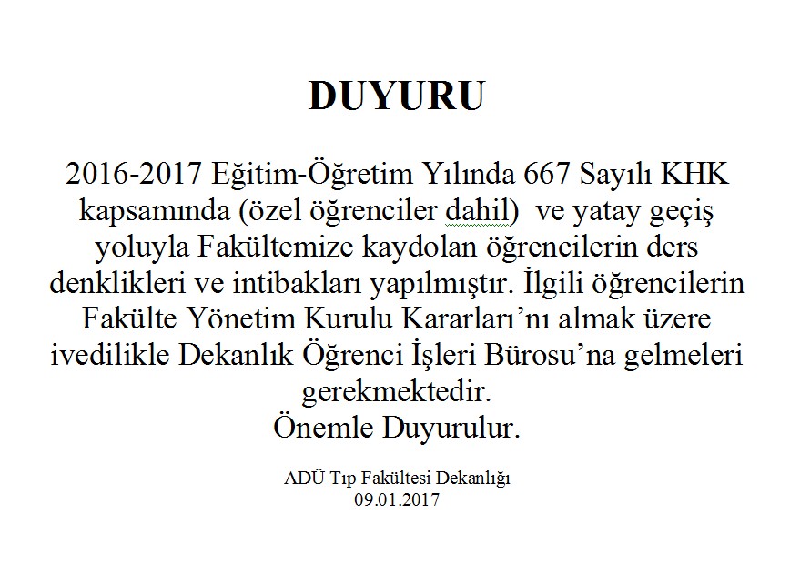667 Sy. KHK Kapsamında ve Yatay Geçiş Yoluyla Kaydolan Öğrencilerin Dikkatine