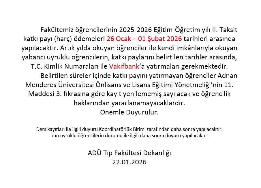 II. Taksit Katkı Payı (Harç) Duyurusu