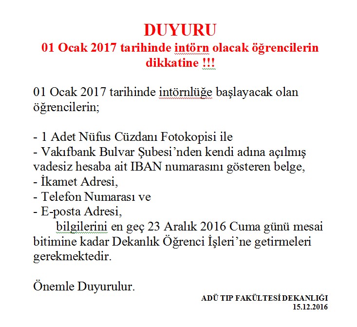 İNTÖRN OLACAK ÖĞRENCİLERİN DİKKATİNE