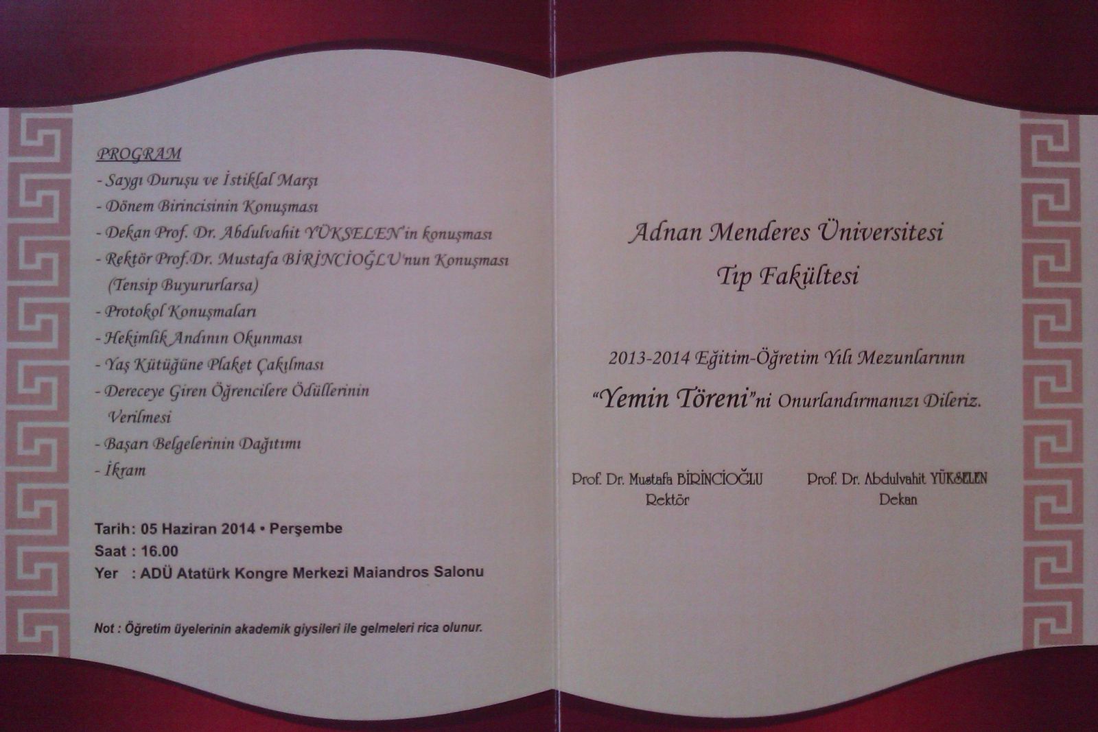 Tören, 5 Haziran 2014 Perşembe günü saat 16:00'da Atatürk Kongre Merkezi Maiandros Salonu'nda gerçekleştirilecektir.