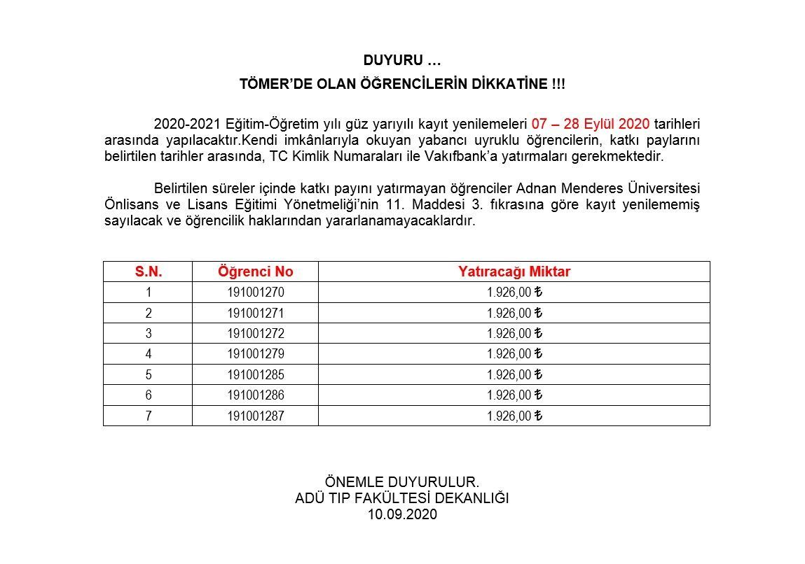 TÖMER'de Olan Öğrenciler İçin Harç Duyurusu