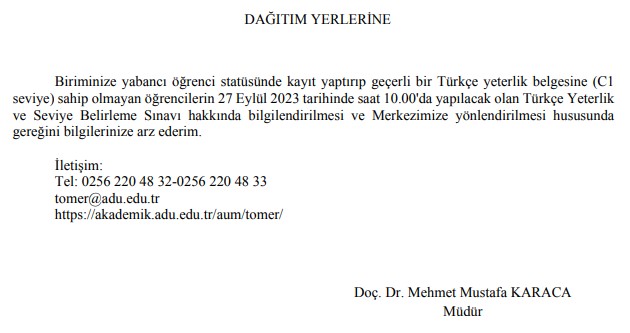 TÖMER DUYURUSU