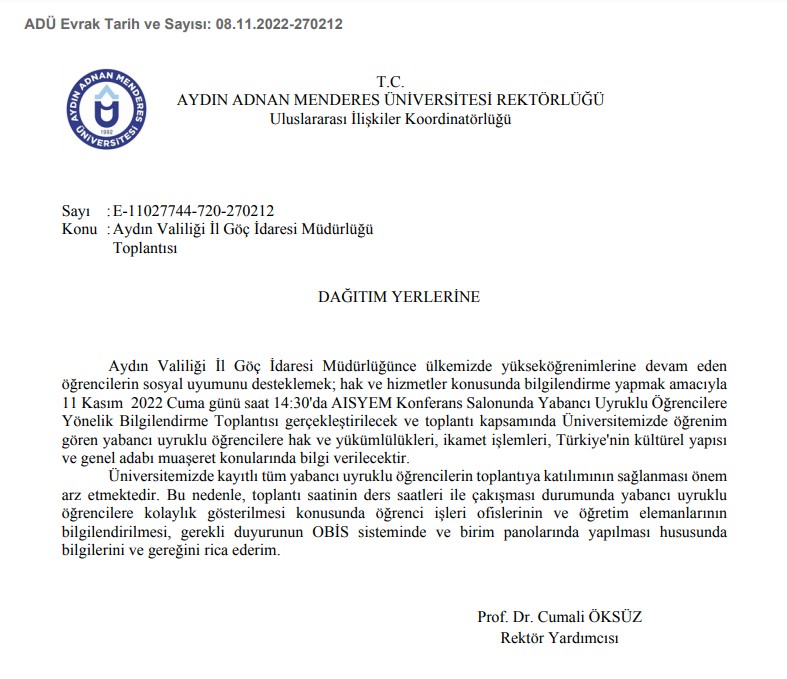 Yabancı Uyruklu Öğrencilerin Dikkatine