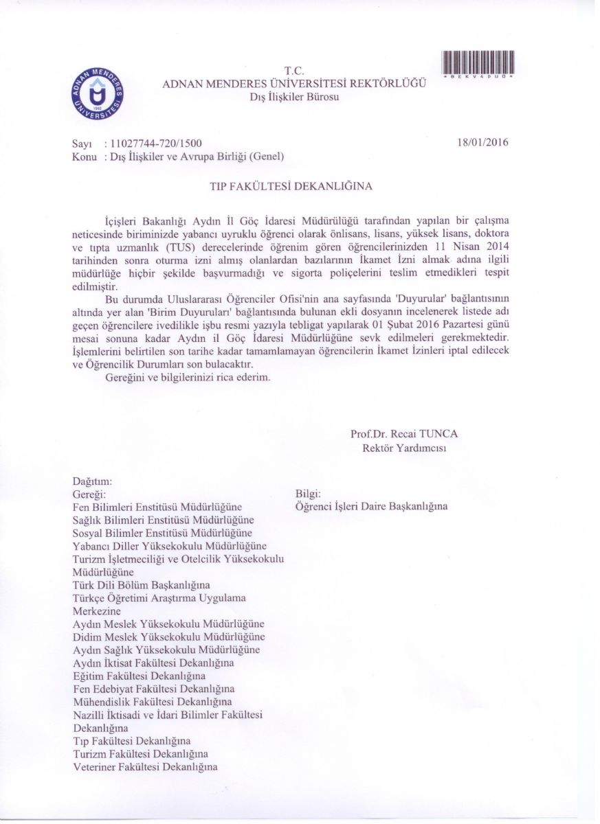 YABANCI UYRUKLU ÖĞRENCİLERİN DİKKATİNE