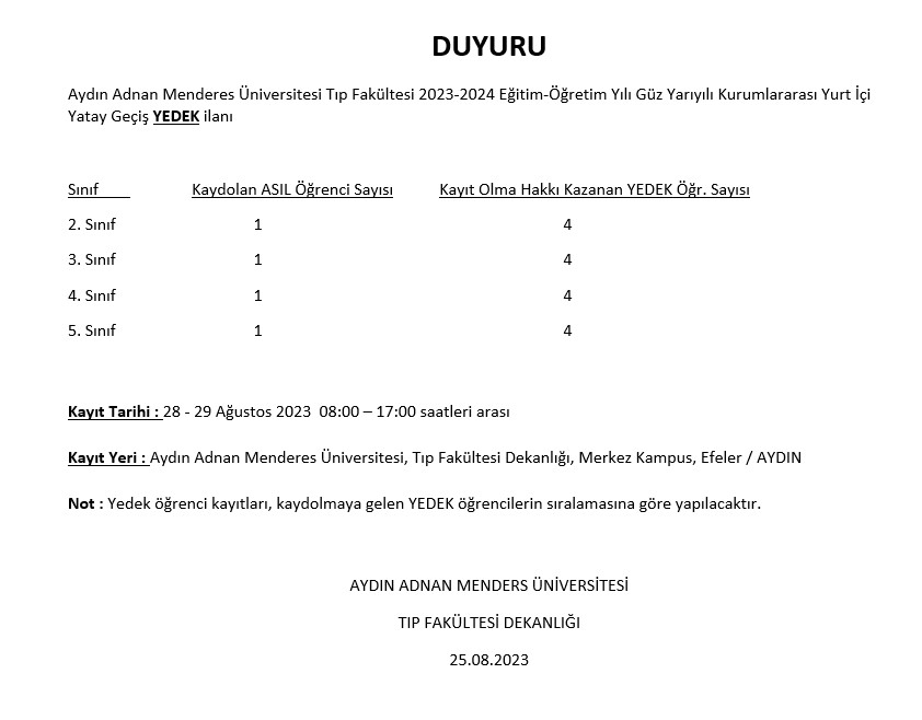 Yatay Geçiş YEDEK Duyurusu