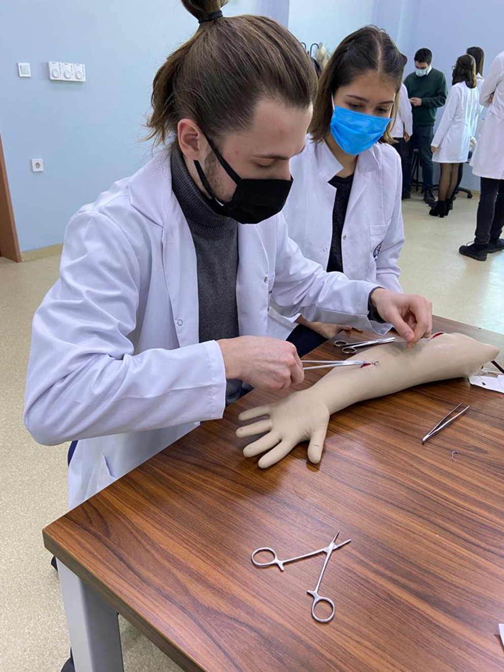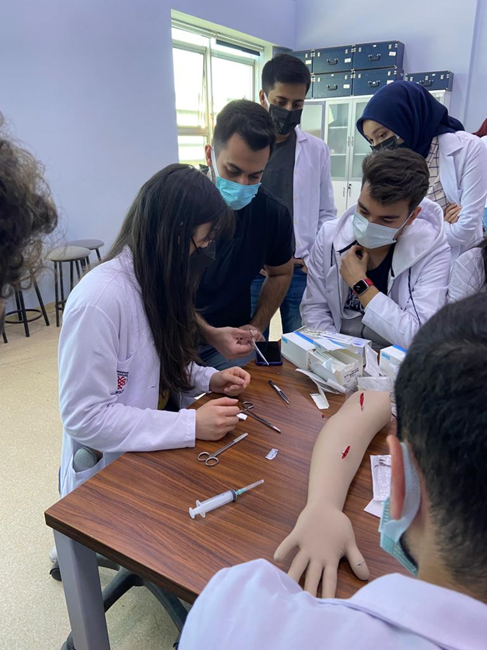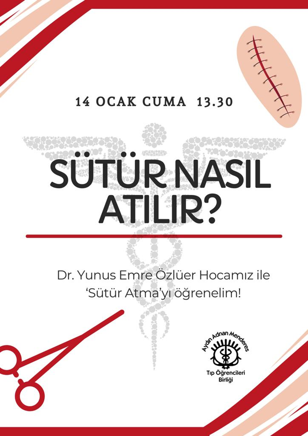 Fakültemiz Türk Tıp ÖÄŸrencileri BirliÄŸi Tıp EÄŸitimi Çalışma Kolu yetkin ve donanımlı hekimler olabilmek adına Dönem III öÄŸrencilerinin sütür atma becerilerini geliÅŸtirebilmek için planladıkları "Sütür Nasıl Atılır?" etkinliÄŸini 14.01.2022 tarihinde gerçekleÅŸtirmiÅŸlerdir. Fakültemiz Klinik Beceri Laboratuvarında 3 farklı grupta gerçekleÅŸtirilen etkinliÄŸe Acil Tıp Anabilim Dalı öÄŸretim üyeleri Dr. ÖÄŸr. Üyesi Yunus Emre Özlüer, Dr. Kadir Güven Aygen ve Dr. İlker ArdaÄŸ destek vermiÅŸlerdir. ÖÄŸrencilerimize sütür ile ilgili temel bilgiler verildikten sonra birebir uygulamalar ile tam öÄŸrenmeleri saÄŸlanmıştır. EÄŸitime destek veren etkinliklerinden dolayı öÄŸrencilerimize ve öÄŸretim elemanlarımıza teÅŸekkür ederiz.
