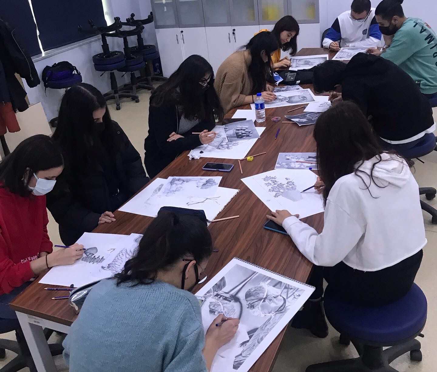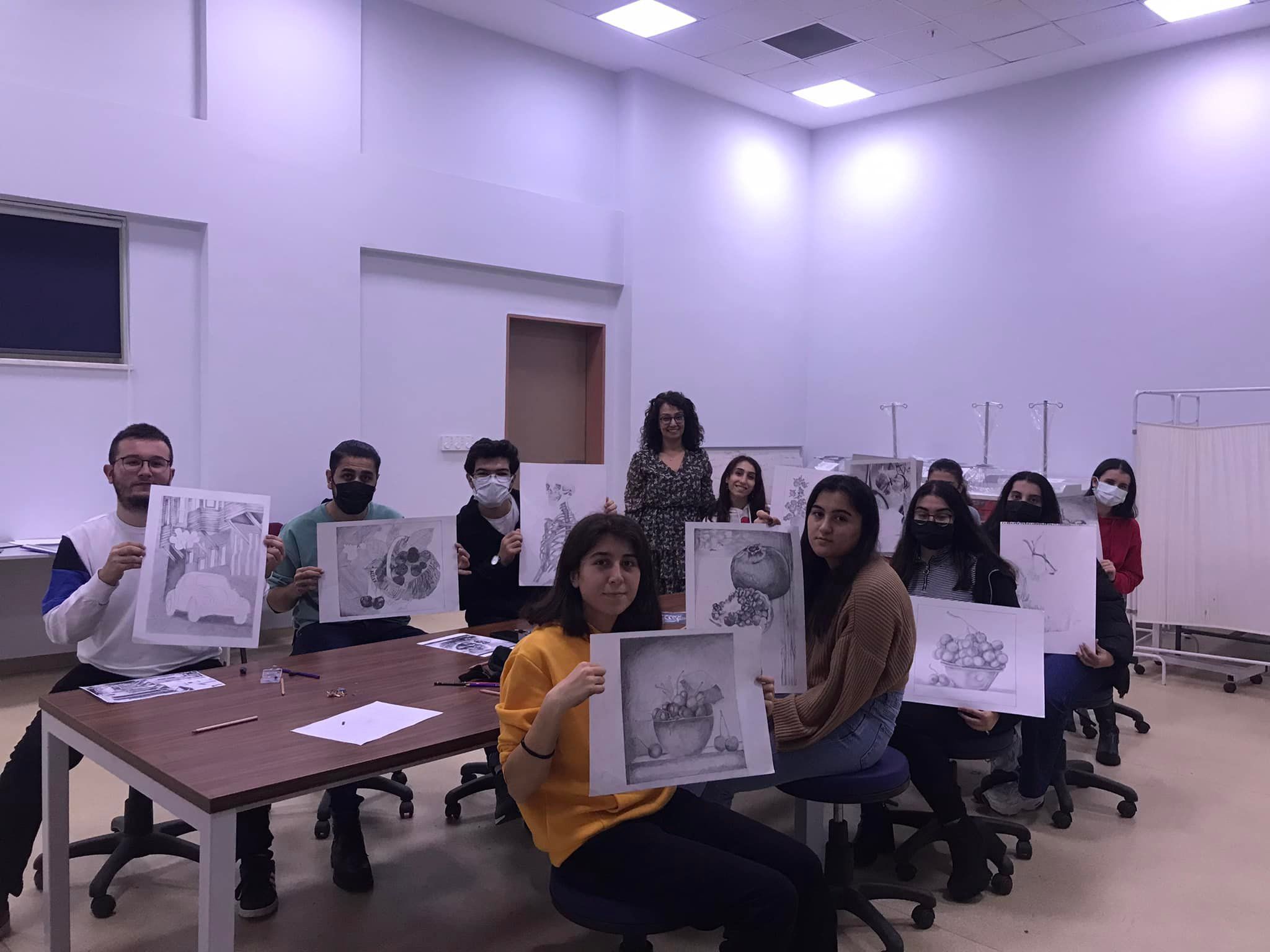 Fakültemiz Dönem I öğrencileri, seçmeli “Tıp ve Resim” derslerini Dekanlık Öğrenci İşleri personeli Ebru Alptekin ile birlikte yürütmeye devam etmektedir.