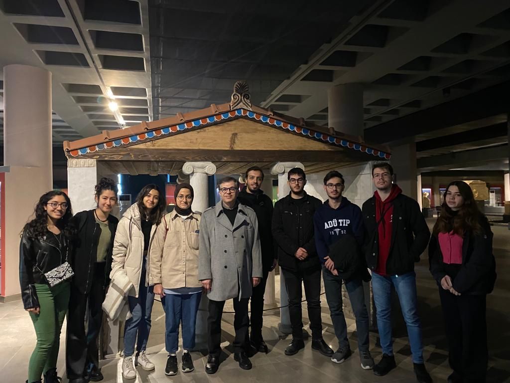 Tıp fakültesi öğrencilerinin sanatın temel bileşenlerini öğrenerek Tıp ve Sanat arasındaki bağlantıyı kurmasını, böylece geniş düşünebilen, empati yeteneği gelişmiş iyi hekimler olmak için sanattan yararlanmasının yolunu açmayı hedefleyen, tıp ve resim, klasik müzik dönemleri, hastane mimarisi, tıp ve edebiyat, tıp ve sinema, heykel sanatının tarihçesi gibi ders içerikleri olan “Tıp ve Sanat” seçmeli dersi öğrencileri Aydın Arkeoloji Müzesi’ni ziyaret etti.