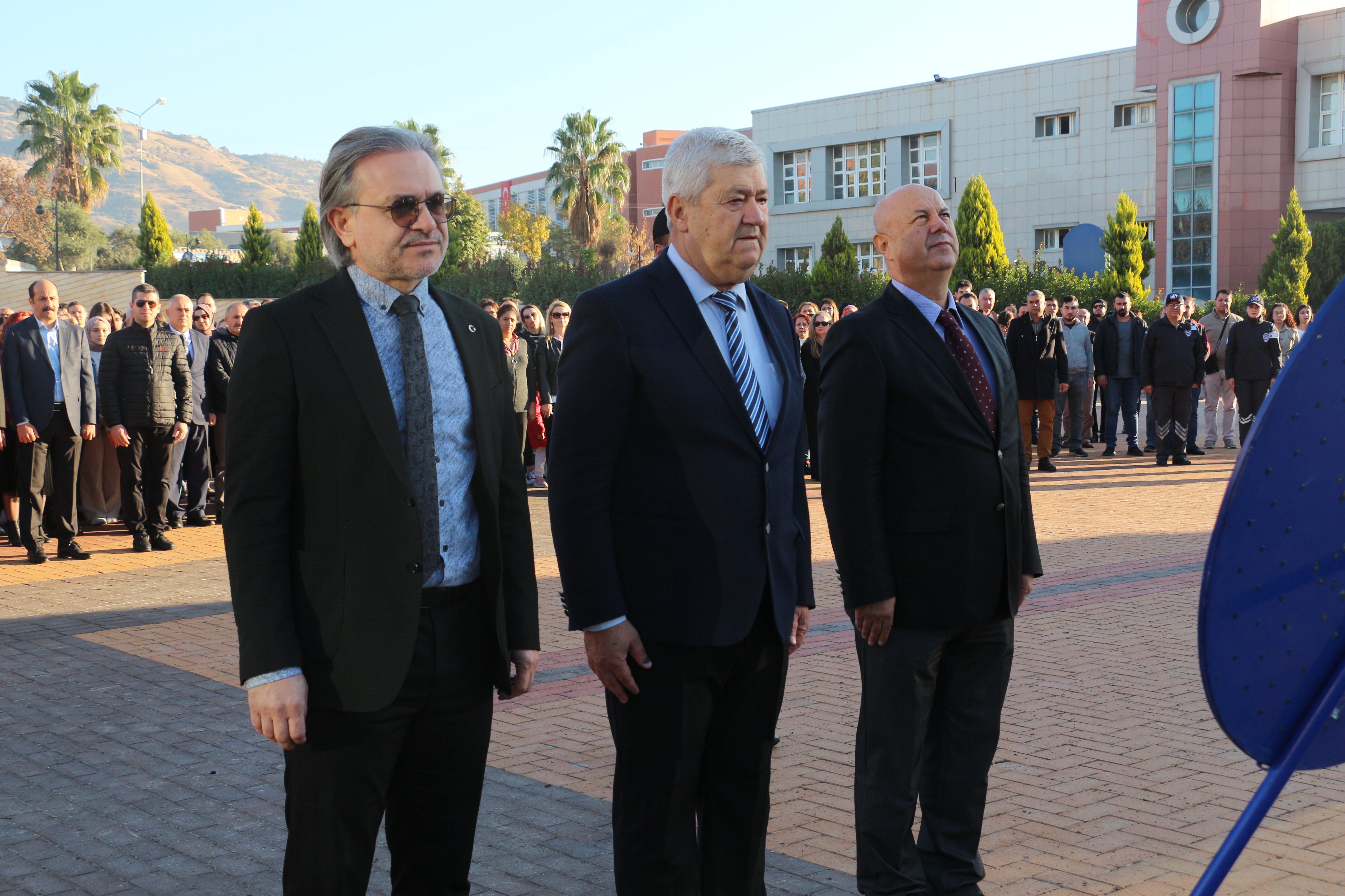Saygı DuruÅŸu ve İstiklal Marşı ile baÅŸlayan program, Üniversitemiz Rektör Yardımcıları Prof. Dr. Mehmet Aydın, Prof. Dr. Ali Akyol ve Prof. Dr. Cumali Öksüz’ün, Atatürk Anıtı’na çelenk sunmasıyla devam etmiÅŸtir.