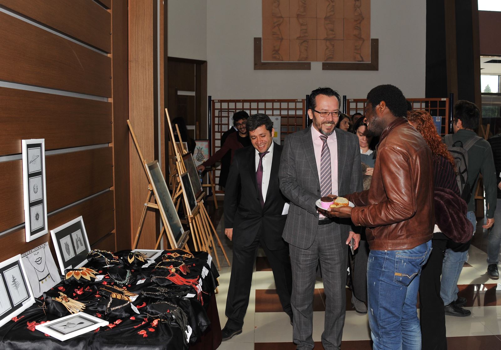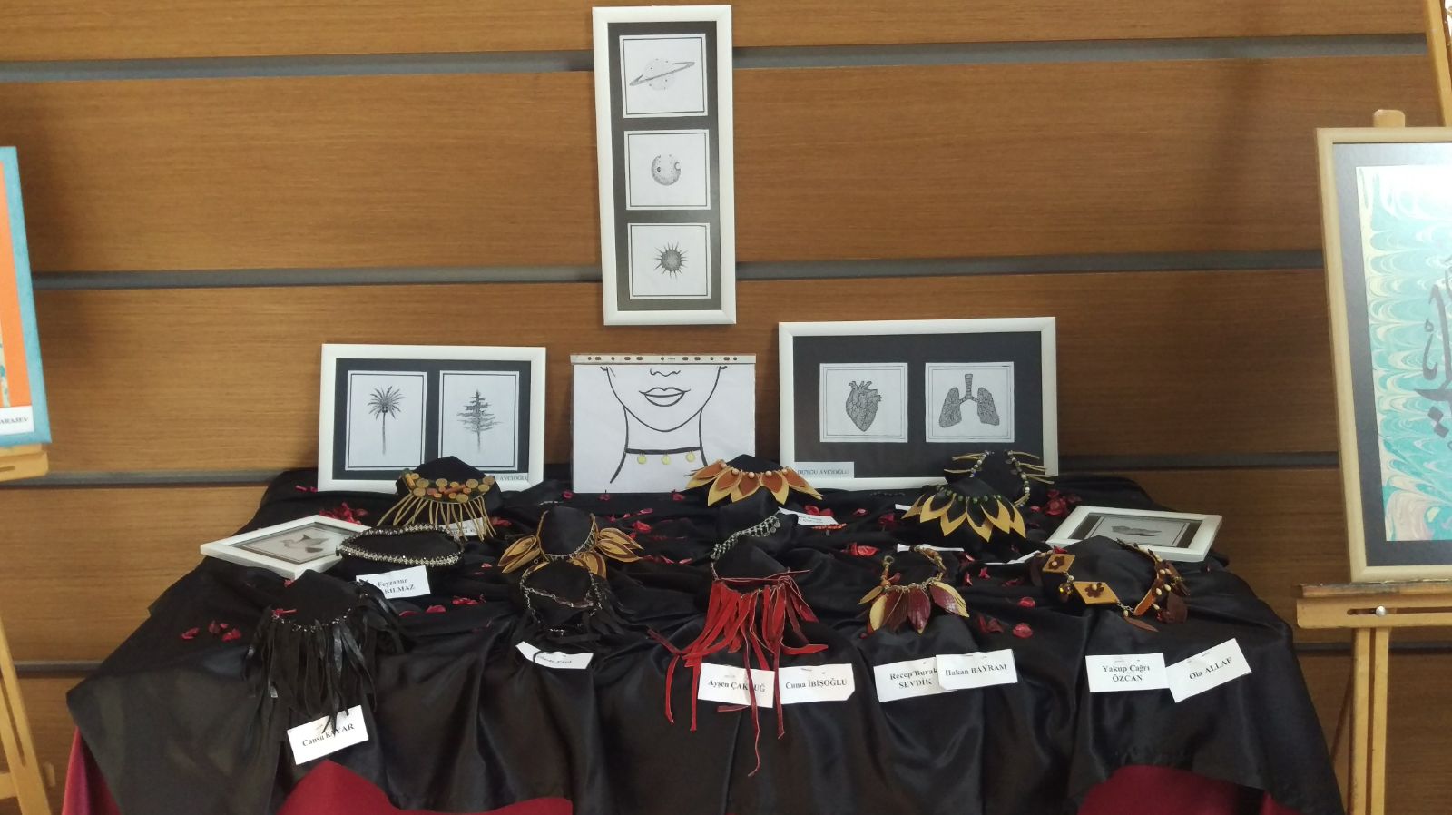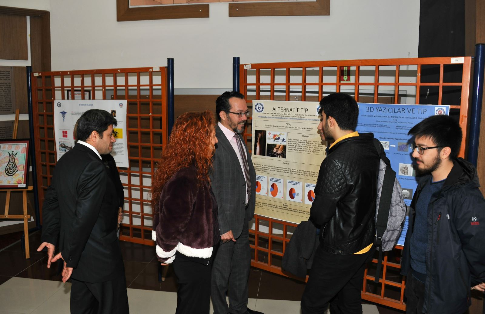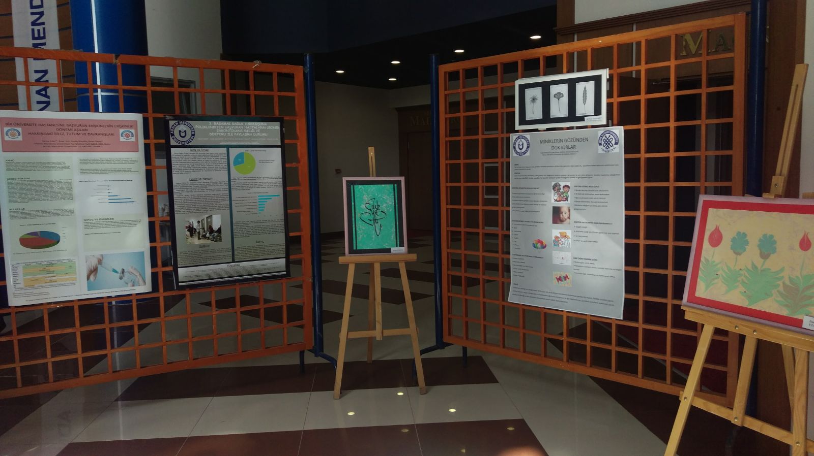 Müzik dinletisinin ardından 1. sınıf öÄŸrencilerinin Okutman Saadet Nihal COÅžKUN ve Yrd. Doç. Dr. Selcen ÖNCÜ ile hazırlamış oldukları Ebru ve Takı Sergisi ile Tıp ve İnsan konulu Poster Sergisi gezildi.